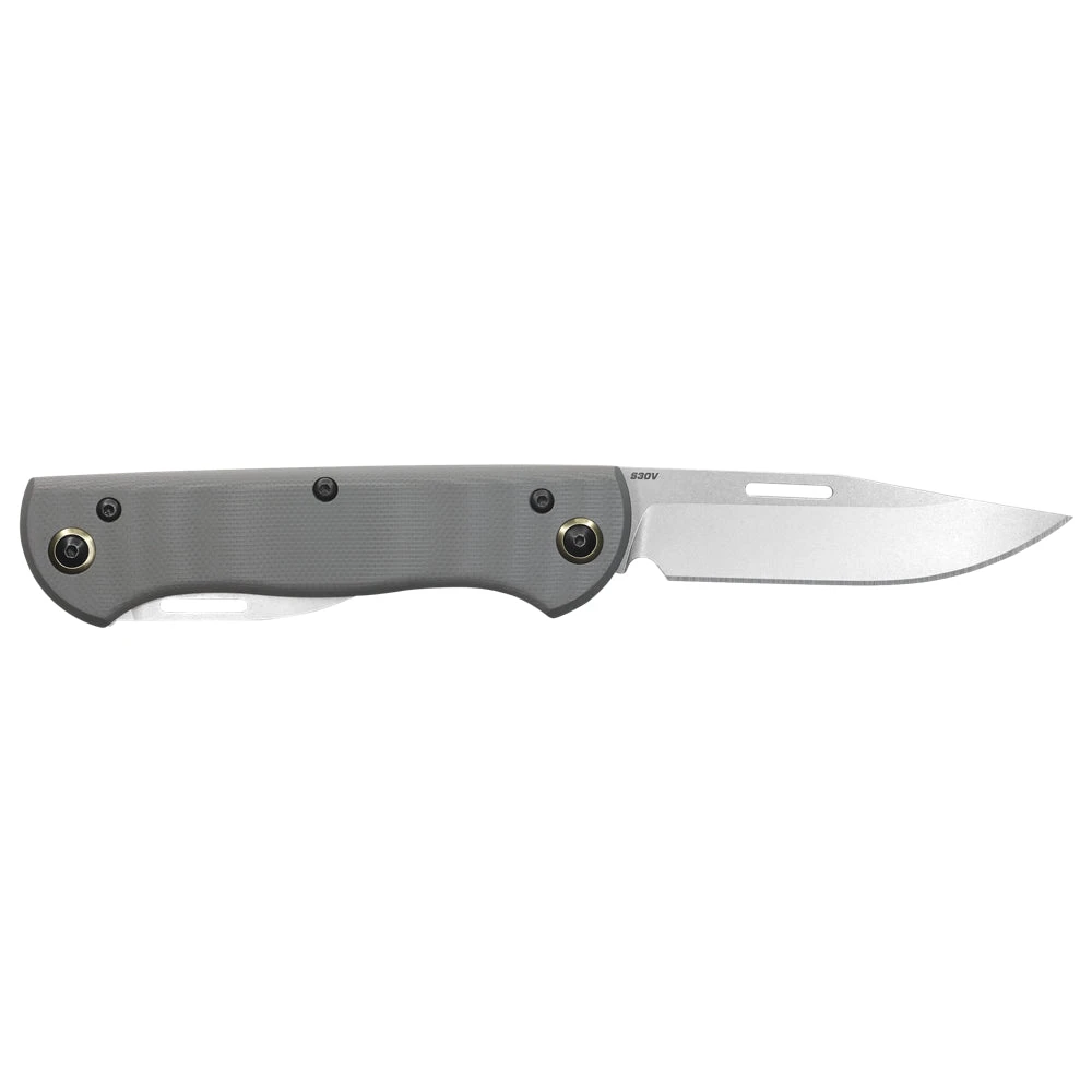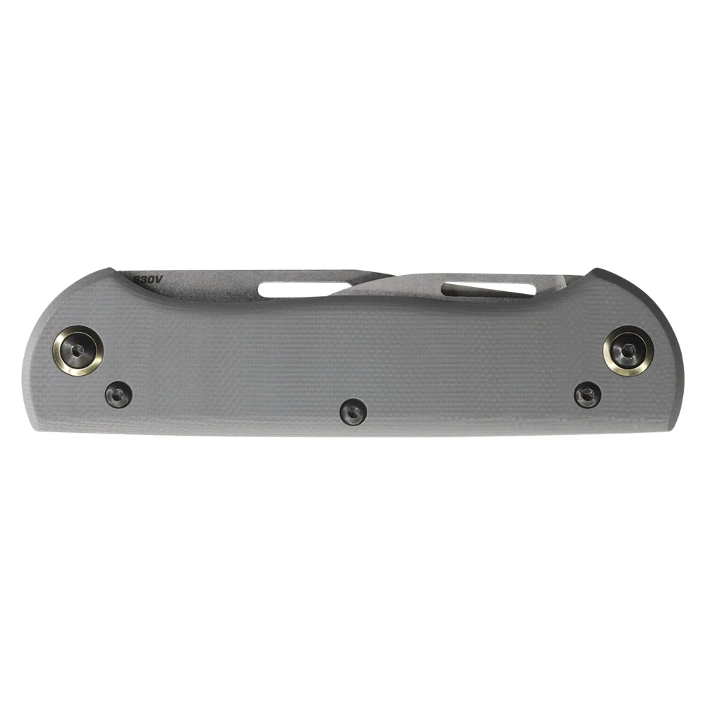La lame en acier CPM S30V a une longueur de 50mm et un poids de 109g, ce qui en fait un couteau facilement transportable et peut se ranger facilement dans une poche. Avec une longueur de lame de 50mm, le couteau de poche est pratique pour les tâches du quotidien. Le couteau est également équipé d’une deuxième lame Spear Point qui a une longueur de 72mm et qui peut aider à accomplir d’autres tâches.
