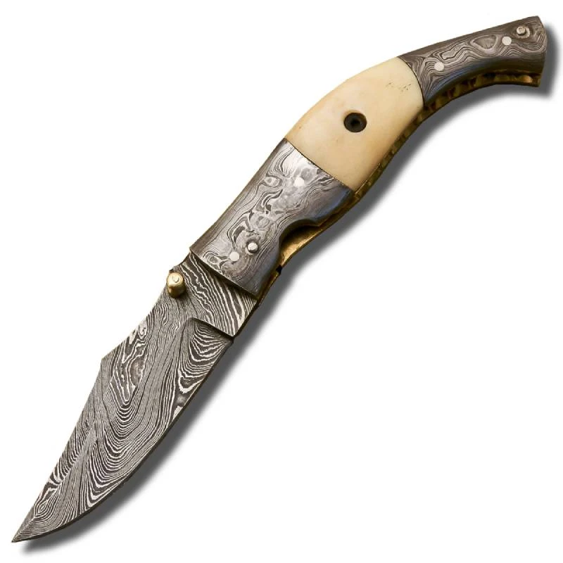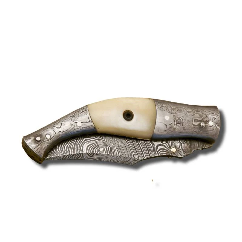 Couteau Pliant Lame Damas et Manche en Os de Chameau