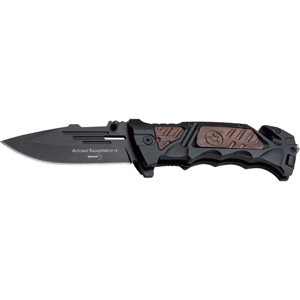 Le Couteau Pliant Multi-fonctions KAL-14 de Boker Plus est également un produit très pratique. Il est doté d’un coupe-ceinture et d’un brise-vitre, ce qui le rend très utile en cas d’urgence. Un insert en bois dans le manche permet également de donner une touche esthétique à l’ensemble.