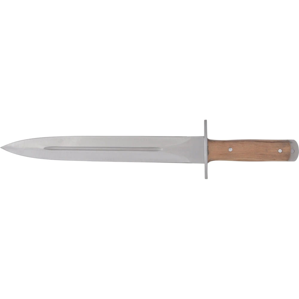 Le manche de cette dague est en olivier, un bois résistant qui absorbe l’humidité, ce qui permet une utilisation agréable pendant de longues heures. Son design et sa couleur naturelle apportent un côté chic à l’ensemble. La couleur de la lame est blanche et un double tranchant assure un tranchant parfait pour toutes vos activités. Elle est fixe avec double garde, ce qui permet une manipulation sécurisée. La couleur naturelle du manche en bois olivier s’associe parfaitement à la couleur blanche de la lame. Un étui en cuir est fourni avec cette dague, pratique pour la transporter et pour la stocker en toute sécurité après chaque utilisation.